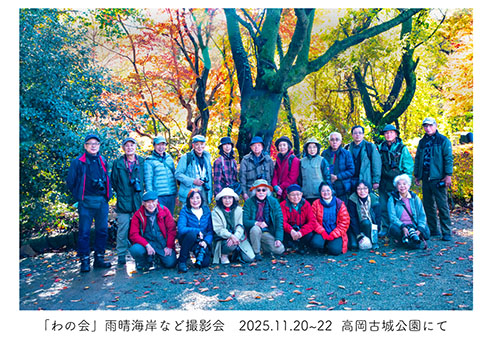 「わの会」は、1998年に発足した全国組織の会で、会員数も190名を数えます。このように多くの会員の支持を得て長く継続できているのも、「和気あいあいと楽しくお付き合いできる」雰囲気の良さと、撮影のジャンルが自由で機材も自由、つまり拘束が一切ないためにのびのびと会員同士が交流できるからではないでしょうか。