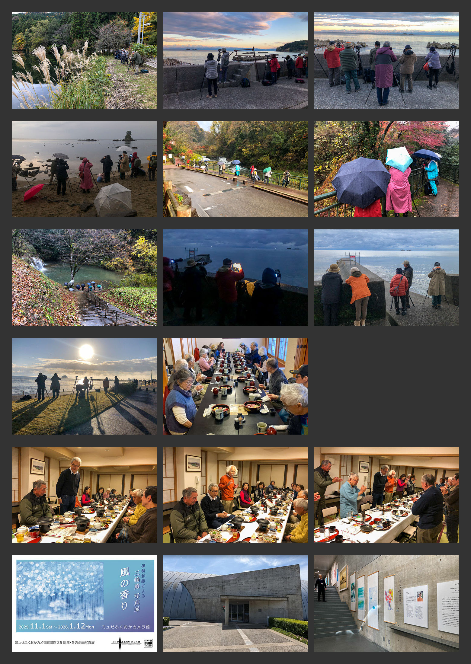 高岡市と氷見市での撮影会、ご参加ありがとうございました。2022年に東海支部撮影会で開催して以来で、2回目となりますが、今回はより多くのご参加で、連日楽しく過ごせたこと、嬉しく思っています。今回は高岡市のミュゼふくおかカメラ館で開催中の三輪薫写真展をご覧いただきたいとの思いもあって企画しました。200mを超える壁面での展示は初めてで、近年の伊勢和紙による作品をじっくり楽しんでいただけたと思います。NHK Eテレでも紹介され、嬉しく思っています。現地世話人の石田さん、いろいろとありがとうございました。